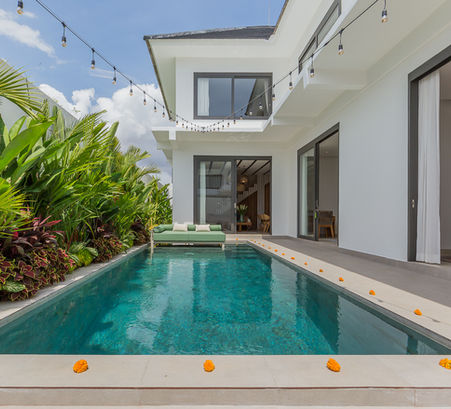 Book Villa Riddhi, a stunning three-bedroom villa with a private pool, nestled in the serene surroundings of Jl. Bumbak, Umalas surrounded by lush paddy fields, This villa offers the perfect blend of privacy, luxury and modern design.