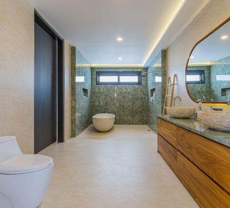 • Ground floor bedroom 1 and 2: King-size bed, en-suite bathroom with rain shower & granite details, electronic safe, air-conditioning & direct access to pool area.